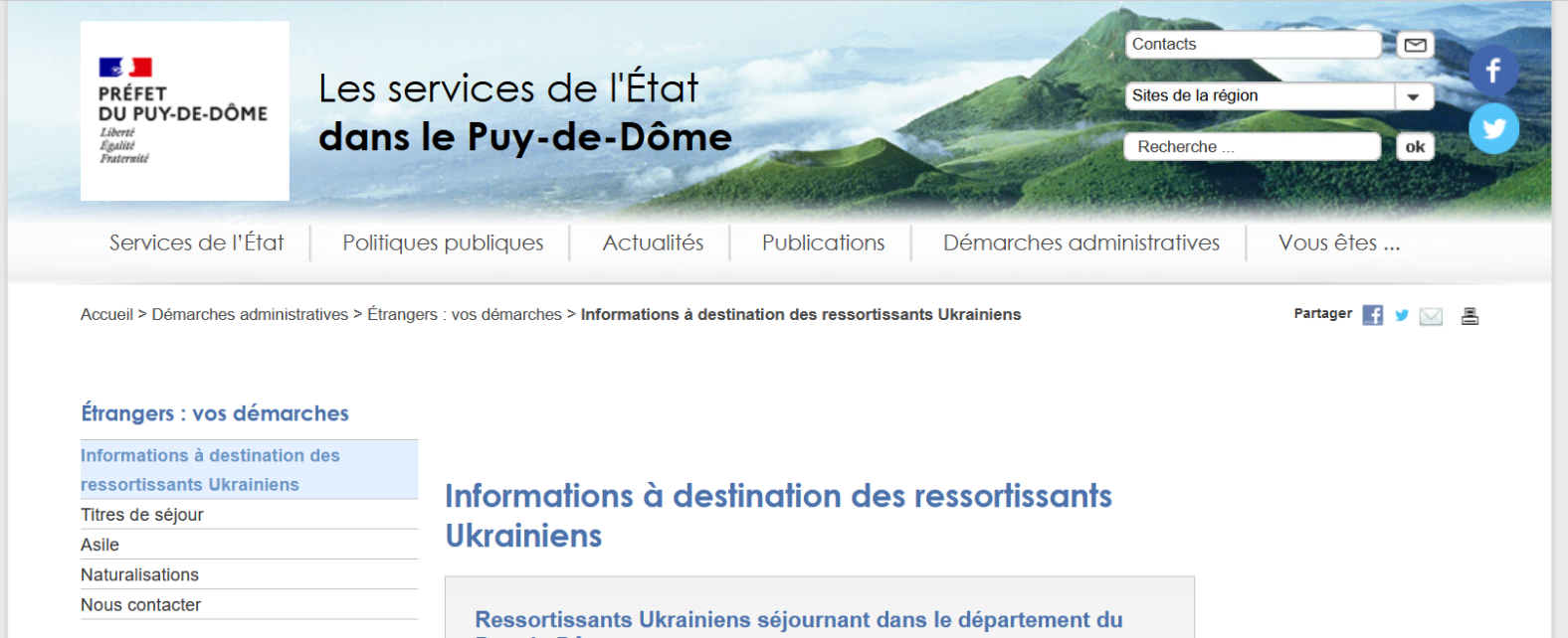 Pour une demande de protection temporaire pour les personnes déplacées d'Ukraine dans le département du Puy-De-Dôme, retrouvez les informattions utiles sur le site de la préfecture https://www.puy-de-dome.gouv.fr/informations-a-destination-des-ressortissants-r2216.html